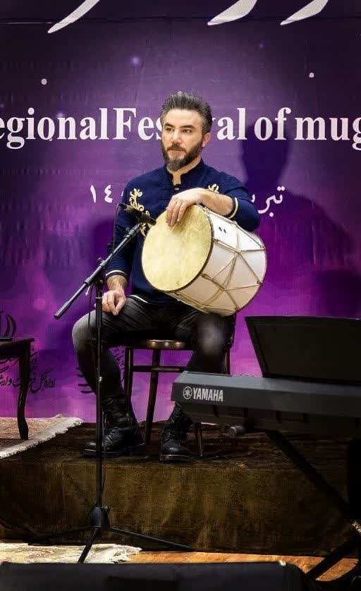 او در کنار دیگر نوازندگان، در صحنه موسیقی موغام تبریز روی صندلی خود نشسته است؛ ریتمها مانند رودی زنده از دل تاریخ جاریاند و ضربان ناغارا، هر لحظه با نفس شنونده همگام میشود، صداها در هم میآمیزند، میپیچند و بالا میروند، گویی هر نت، هر کوبش، قصهای از آذربایجان را در هوا نقش میکند؛ قصهای که زمین و آسمان، انسان و موسیقی، در یک لحظه جاودانه با هم میشوند.
